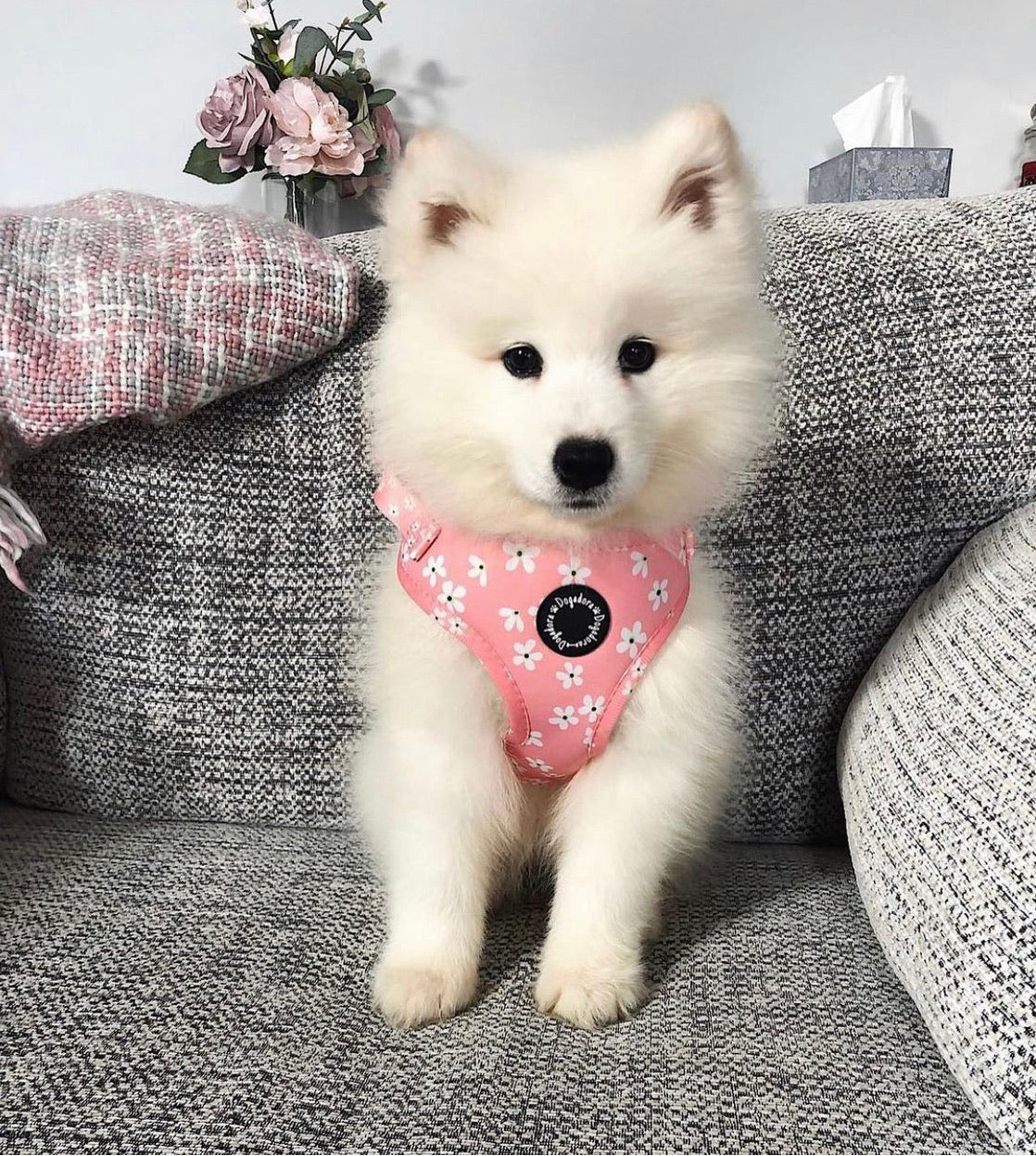 Our Pink Blossom adjustable dog harness is super soft with fully adjustable neck and chest straps allowing the perfect fit!